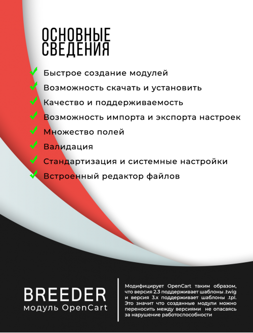 OpenCart Breeder работает на OpenCart 2.3 и 3.x версиях.